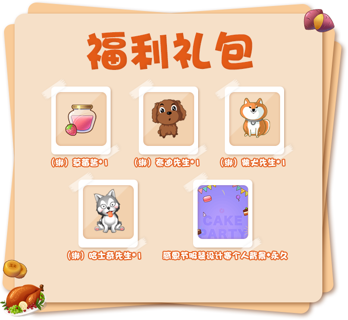 投票方式:在投票阶段,官方将会通过 “感恩节服装设计大赛”专题页中(将在投票阶段开始时通过官网开启)展示每位玩家的作品,所有小伙伴可前往专题页进行一次投票,选出自己心目中最优秀的作品。