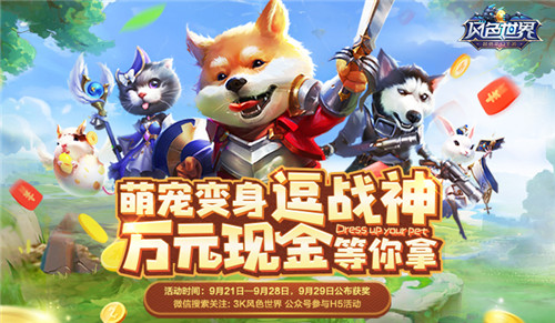 据游戏负责人介绍,离宠物海选活动仅剩2天,所以,还没来得及参赛的各位铲屎官们,赶紧关注3K游戏《风色世界》官方微信公众号(ID:fssj3k)。进入H5活动页面,按提示要求上传主子的正面照,帮主子搭配好游戏里的职业装备,通过官方审核后即可参与海选,和其他萌宠争奇斗艳!
