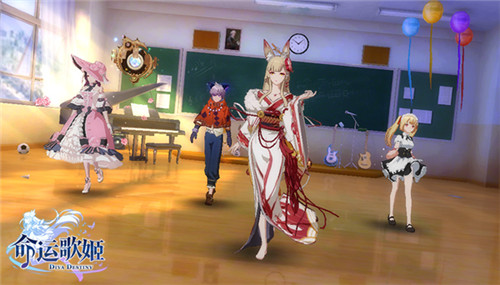 在《命运歌姬》浪漫的归宿之乡中,任何地方都可以成为你的舞台。阳光温暖岁月静好的教室,铺满樱花花瓣的寺院,亦或是古典辉煌的城堡,都留下了歌舞姬们的动人身影。针对每位歌舞姬的个人风格,数百套量身打造的精美打歌服也让人目不暇接。华丽的LO裙、英气逼人的军装、优雅的舞会礼服或者是元气女仆,猫耳猫爪猫尾等你喜欢的款式或者萌点都应有尽有。甚至男孩子也能穿花魁装,古代风科技风统统都装进衣柜。自由度极高的时装搭配,穿出自己的style,打造归宿之乡最闪耀的爱抖露吧!