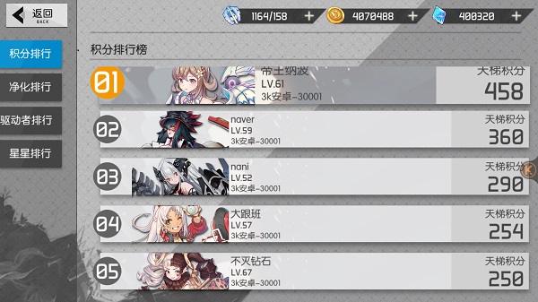 各位教官,快来天梯积分榜肝一肝吧!成为众人皆知的实力教官不是梦,就看你肝不肝得动啦!