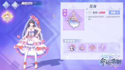 女生最美的时刻一定是穿上婚纱的那天。那想不想为你的歌舞姬披上美丽的嫁衣?目前《命运歌姬》花嫁时装池种的“花海”“神圣之礼”“宝石公主”三件花嫁时装迎来限时复刻返场了哦~~~以紫色为基调的花海时装处处透着梦幻的气息;以蓝色为底色设计的宝石公主裙摆间点缀着宝石,散发着公主该有的高贵优雅;“神圣之礼”是三件中的唯一男装哦。如过说白色燕尾服是高贵优雅,那以蓝色为基色设计的燕尾服则有着如同其名“神圣之礼”般的神秘色彩。