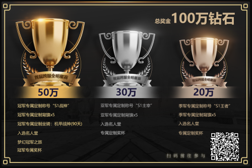 冠军将独揽50万钻石,同时战队成员将获得冠军专属定制“S1战神”称号,精心打造的冠军专属定制背旗,以及全游戏唯一的冠军专属定制坐骑“机甲战神” 只有本次全明星赛冠军成员才能获取!同时,该坐骑也是《光明勇士》有史以来最炫酷的机甲类坐骑。除此之外,冠军战队成员还将入选名人堂,载入卢米娅大陆史册,成员信息将在官网进行永久公示,英雄不朽!不仅如此,还有梦幻冠军之旅,以及冠军专属奖杯等实体奖励相赠!