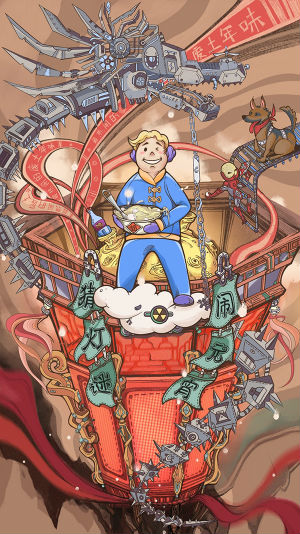 虽然地表早已成了荒凉的废土,但乐观的辐射小子总会与他们的朋友一起庆祝每一个节日。瞧,这一次他便被“元宵”这一中国传统的节日所深深吸引,不仅煮了一大锅汤圆,还自己制作了一条机械龙!