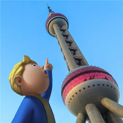 其实,可爱的辐射小子早在半个月前就已踏上神州大地。他在过去的两周多时间内先后畅游了西安、北京、成都、广州,终于在今天来到中国之旅的第五站:上海,实现了自己与东方明珠同框合影的愿望,并向上海居民发出了“我爱上海!”的感言。
