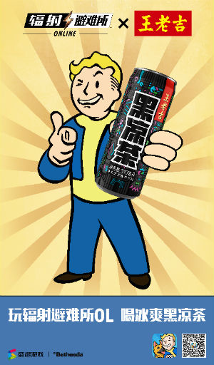 《辐射:避难所Online》与王老吉联合推出的定制包装款黑凉茶来啦!辐射小子作为避难所科技公司的吉祥物,在炎炎夏日,邀您一起喝王老吉“黑凉茶”!在前阵子火爆的话题“辐射小子中国行”中,辐射小子尝遍了大江南北的美食,最近气温逐渐炎热,“王老吉黑凉茶”成为了辐射小子的日常必备饮品。怕上火?辐射小子倾情推荐,就喝“王老吉黑凉茶”!